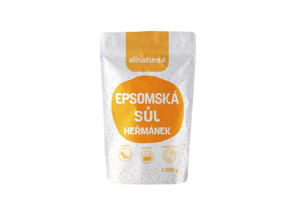 Epsomská minerální sůl do koupele s heřmánkem. Epsomská sůl detoxikuje, uvolňuje svaly a odbourává stres. Heřmánek vyniká svou schopností uvolňovat ucpané dýchací cesty během rýmy a zároveň jemně pečuje o pokožku. Koupel nohou v Epsomské soli navíc pomáhá zmírňovat otoky dolních končetin a ničí bakterie způsobující jejich zápach. Lze použít na celé tělo jako peeling.