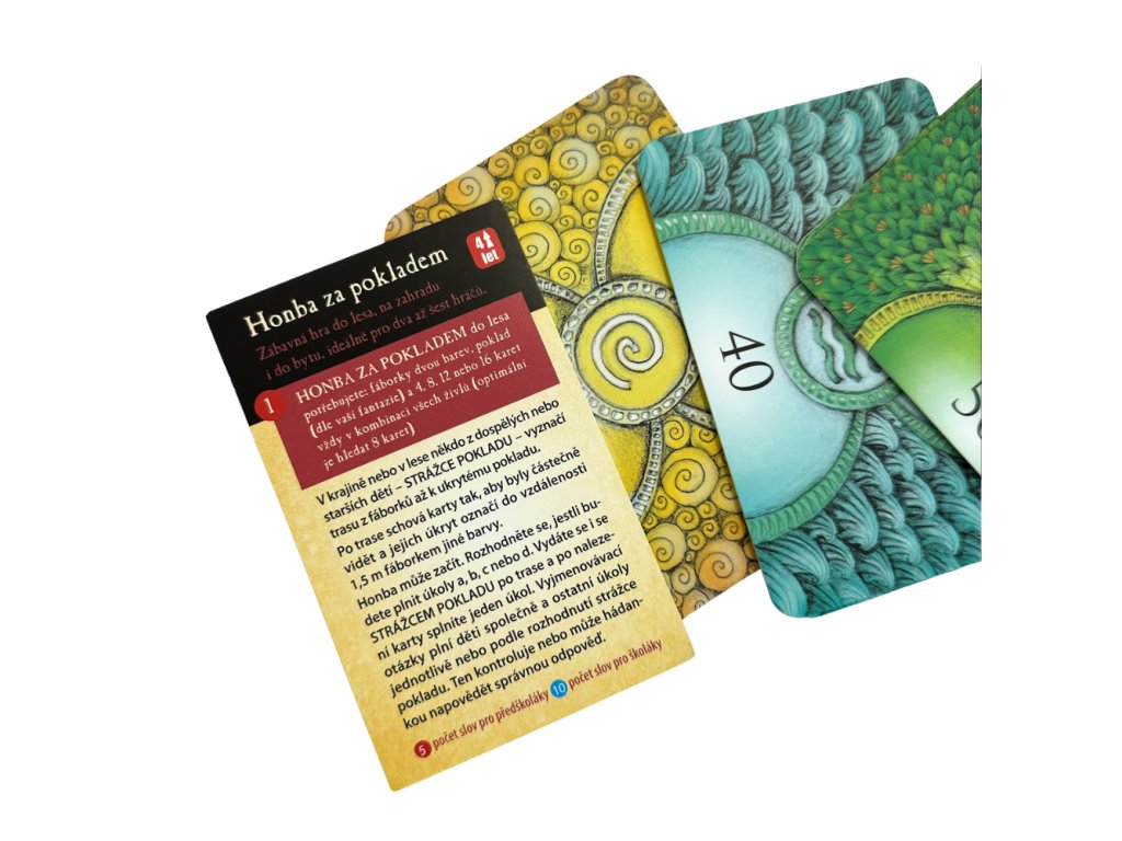 Objevte originální hru, dospělý nebo starší dítě - STRÁŽCE POKLADU - vyznačí trasu fáborky, rozmístí 16 laminovaných karet s 64 úkoly (4 kategorie: Země, Voda, Oheň, Vzduch) a dobrodružství může začít. Úkoly rozvíjejí vědomosti o přírodě i lidech, motorické dovednosti, sebevědomí – přičemž strážce pokladu může při obtížném úkolu napovědět. Hra nabízí několik variant i opakovatelnou zábavu – stačí vyplnit 8 úkolů a zbytek schovat na příště.