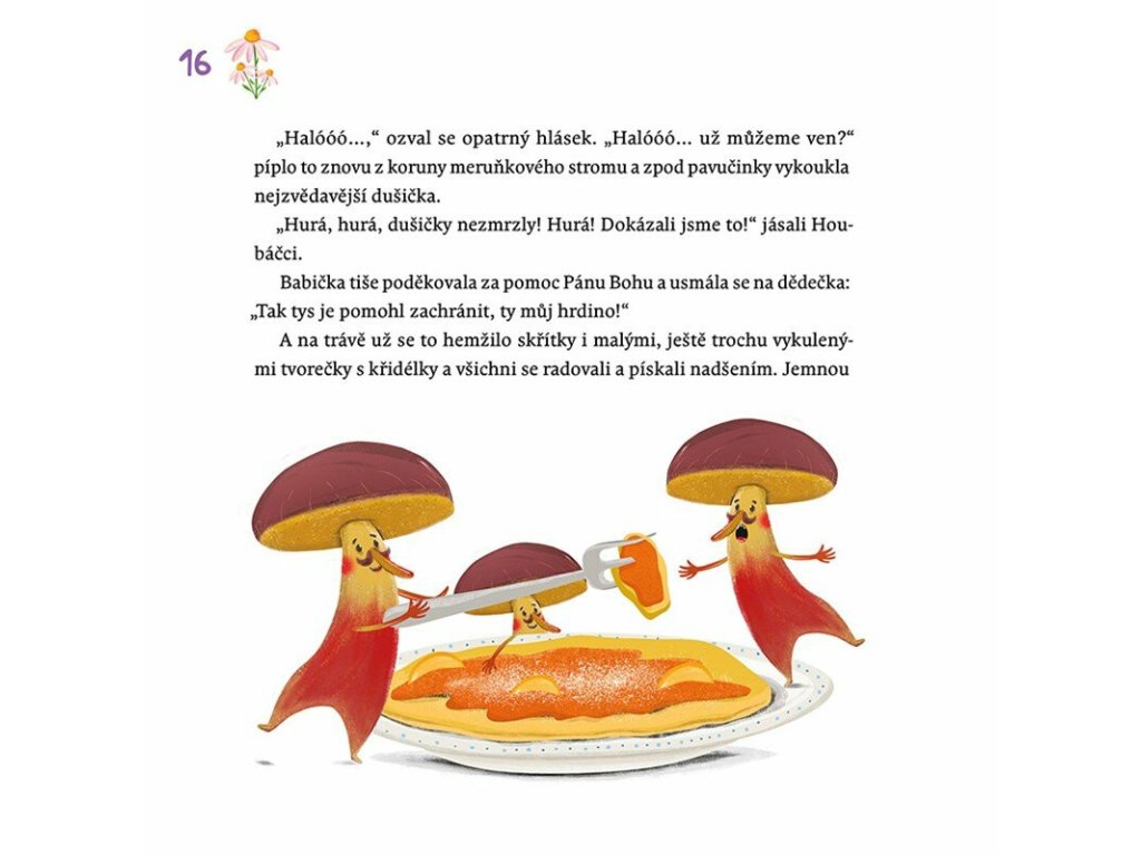 Příběhy Houbových skřítků, kteří mají spoustu kamarádů v lese, v zahradách i v nedaleké vesničce – krásné příběhy o vzájemné spolupráci lidí a bytostí přírody