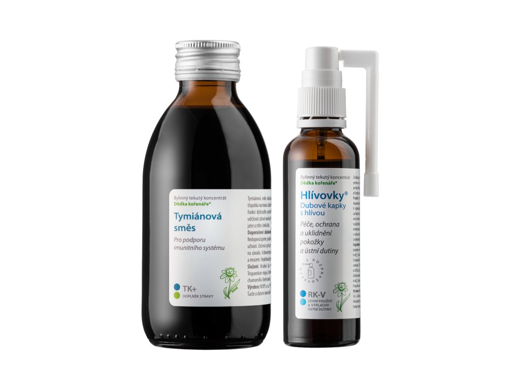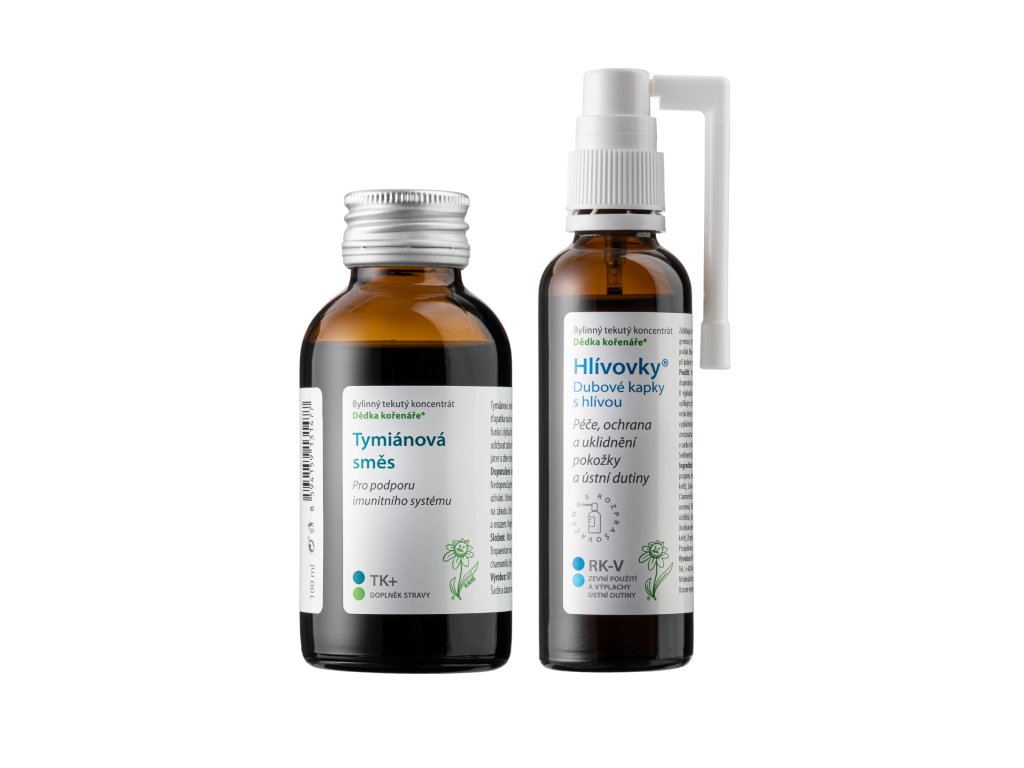 Tymiánová směs (doplněk stravy) a Hlívovky® (kosmetický produkt) jsou přírodní pomocníci pro podporu organismu, nikoli léky. Při jakýchkoliv zdravotních potížích vždy vyhledejte odbornou lékařskou pomoc. Tato vybraná sada výrobků je určena jako doplněk péče o vaše zdraví a pohodu, nikoliv jako náhrada lékařské péče.