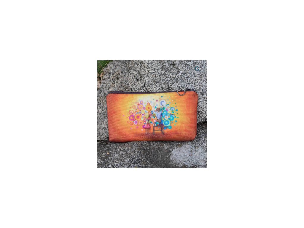 Kapsička s autorskou ilustrací obrázku, která je na obou stranách. Kapsička na brýle, toaletní potřeby nebo na různé poklady. Díky karabince se lehce otevírá a dá se připnout do kabelky. Dokonalá na prázdninové cesty, při kterých jsou malé kapsičky na kartáčky na zuby nebo pastelky vždy třeba. Obrázek je vytištěn na polyesterové plátno, uvnitř je vyložena polyesterovým mikroplyšem. Vnější materiál 100 % PES je pevný a trvanlivý. Potisk má vynikající stálobarevnost. Formát kapsičky 22 × 11 cm.
