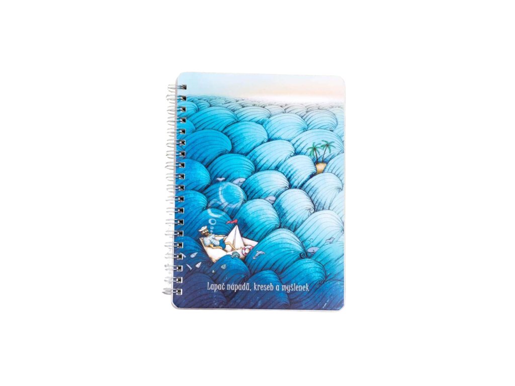 Skicáček s autorskou ilustrací na obálce. Rozměr skicáku 12,5x17,5 cm a má 50 listů. Kroužková vazba, bez linek.