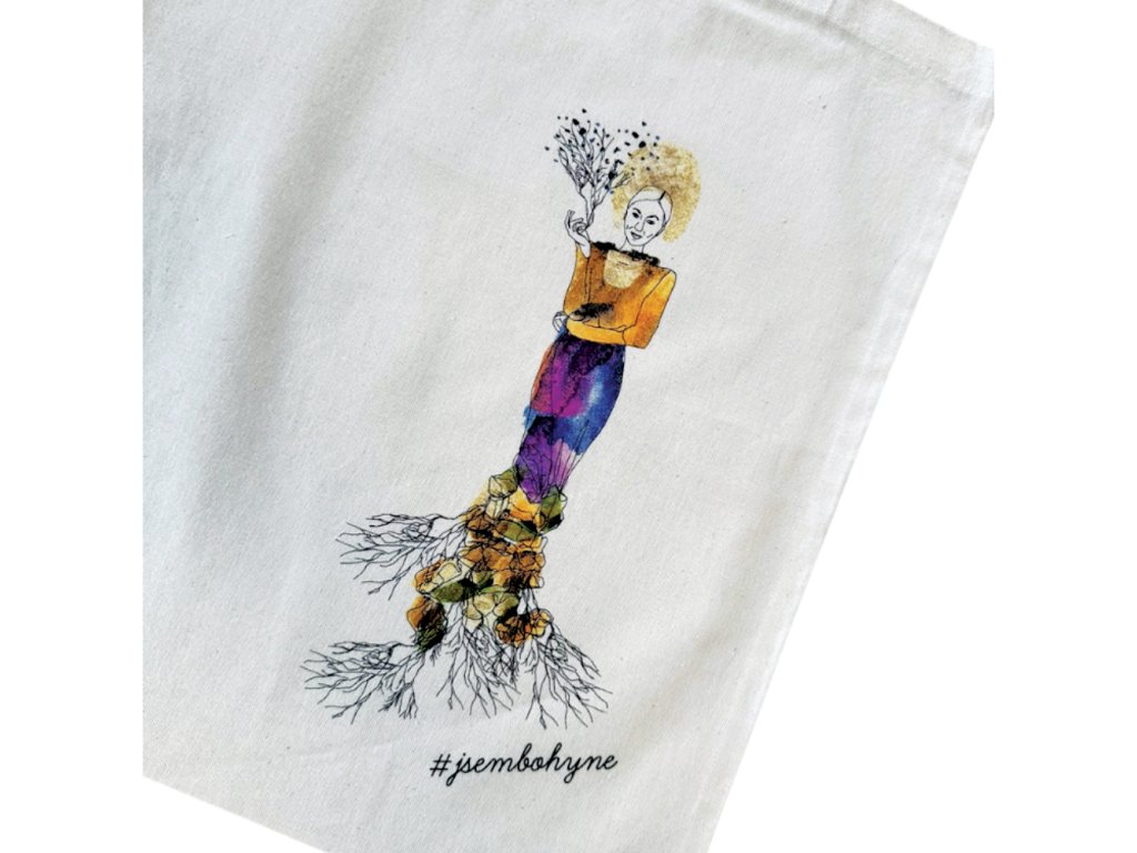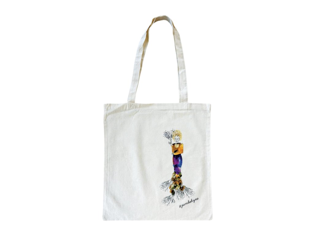 Bavlněná taška s potiskem krásné ilustrace od lotyšské výtvarnice Ievy Ozoly s motivem bohyně Mokoš.