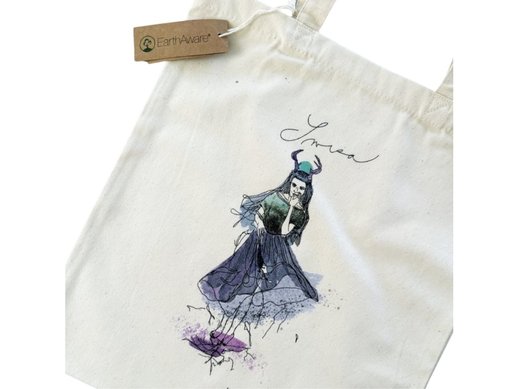 Bavlněná taška s BIO certifikací s potiskem krásné ilustrace od lotyšské výtvarnice Ievy Ozoly s motivem bohyně Swizy.
