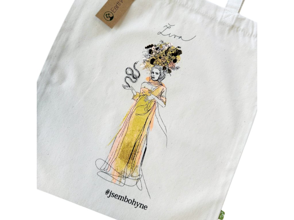 Bavlněná taška s BIO certifikací s potiskem krásné ilustrace od lotyšské výtvarnice Ievy Ozoly s motivem bohyně Živy.