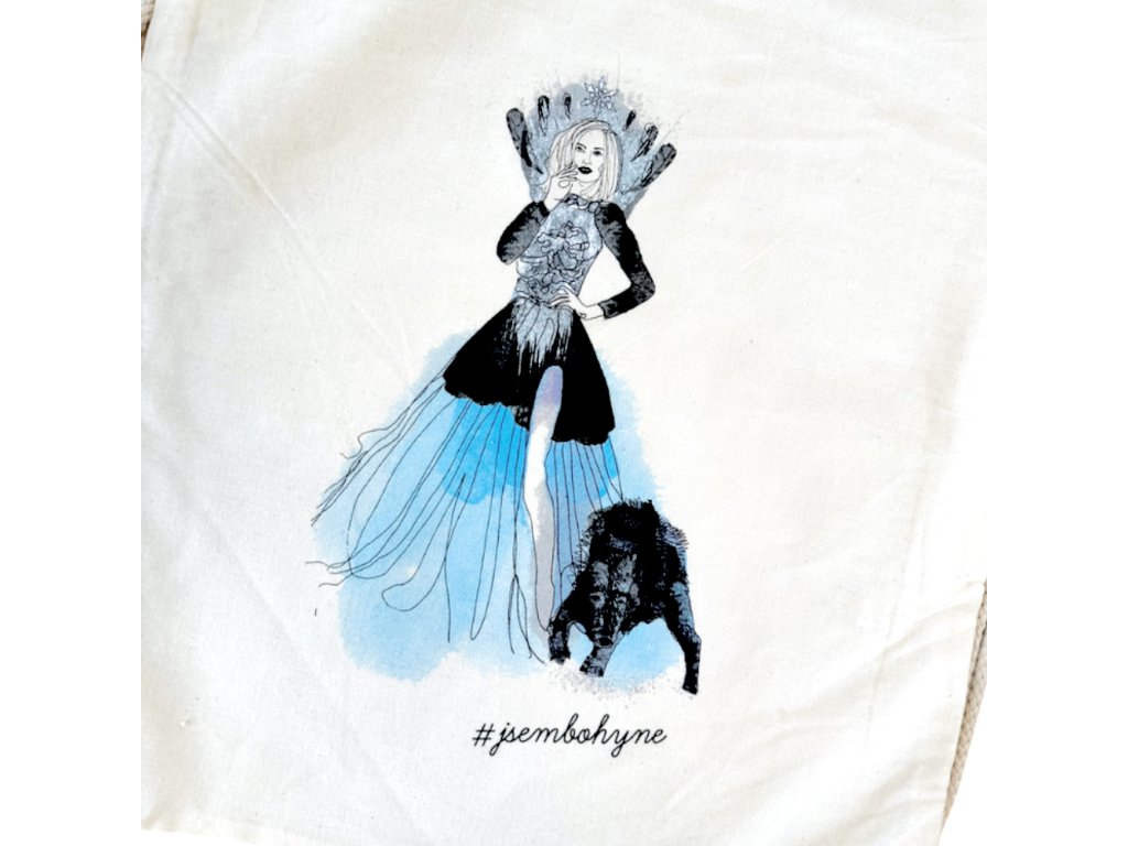 Bavlněný batůžek s potiskem krásné ilustrace od lotyšské výtvarnice Ievy Ozoly s motivem bohyně Morany.