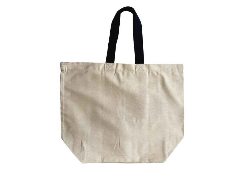 Taška je vyrobena ze silného kanvasu, v jedné vrstvě. Bavlněná ucha jsou silná, fixně našitá k tašce, každé dlouhé cca 60 cm.