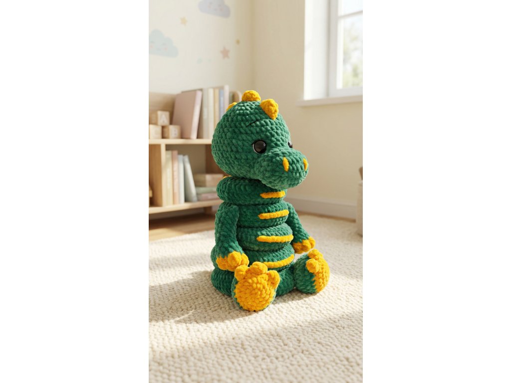 Dráček Šikula je pečlivě ručně zpracovaná dekorace z příjemné příze, která krásně vynikne na komodě, poličce nebo vedle dětské postýlky. Je ideální volbou pro ty, kdo hledají designový, ručně vyráběný kousek s příběhem, který zútulní dětský koutek a stane se výrazným prvkem interiéru.