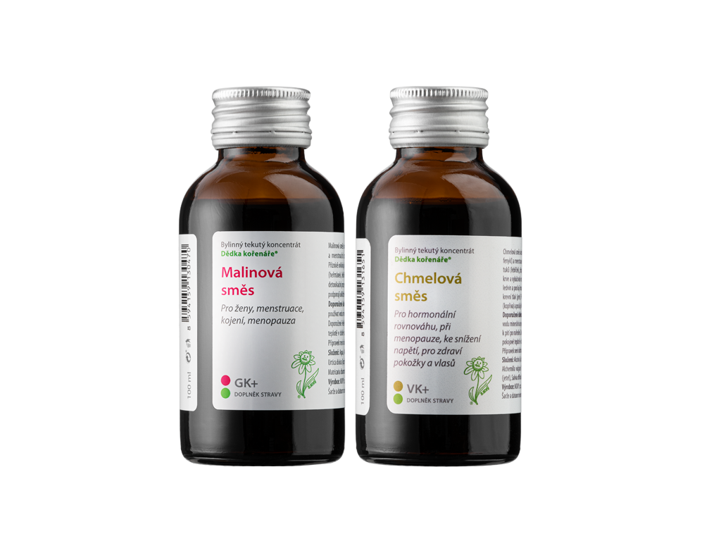 Malinová a Chmelová směs (doplněk stravy) jsou přírodní pomocníci pro podporu organismu, nikoli léky. Při zdravotních potížích vždy vyhledejte odbornou lékařskou pomoc. Tato vybraná sada výrobků je určena jako doplněk péče o vaše zdraví a pohodu během ženské cykličnosti, nikoliv jako náhrada lékařské péče.